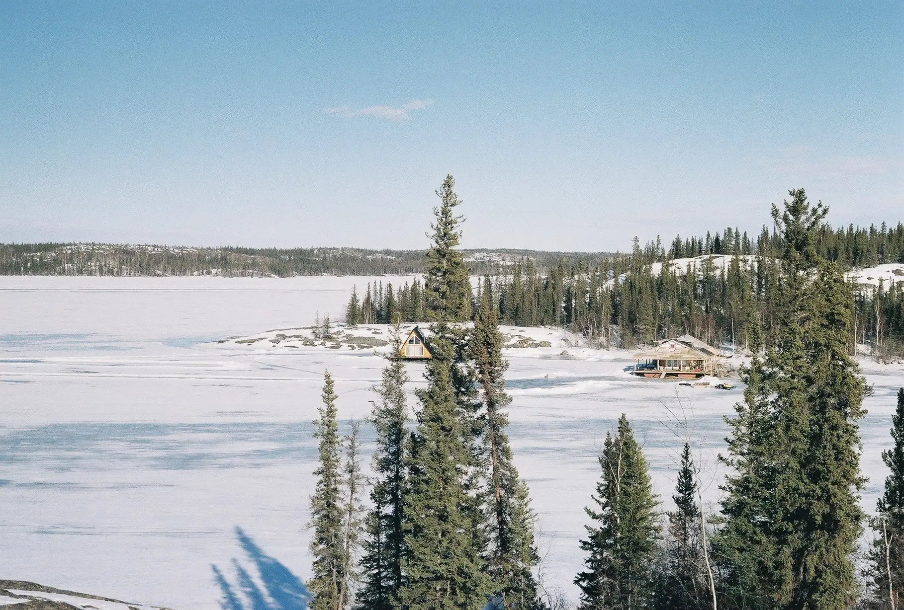 En hiver, il y a des routes de glace, c’est-à-dire des routes ouvertes aux véhicules sur des lacs gelés.